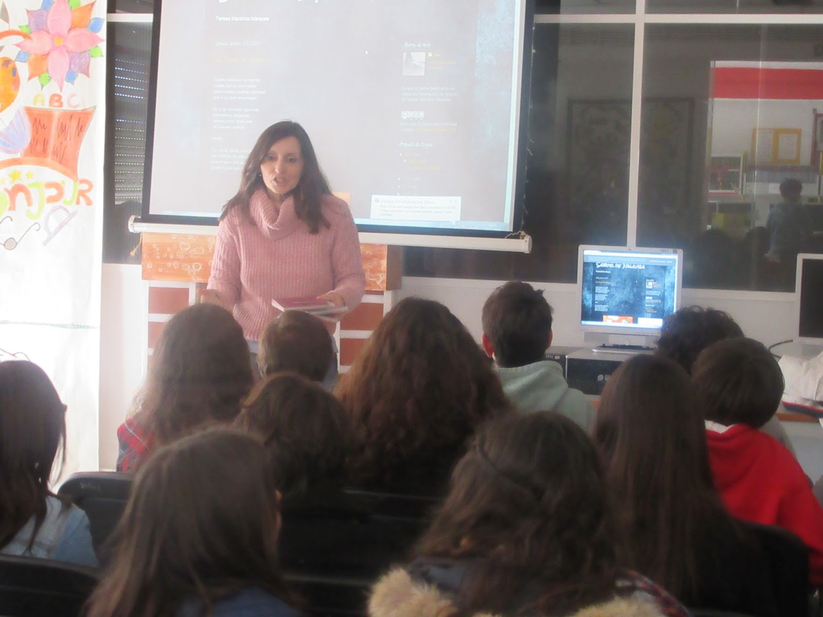 Esta manhã, decorreu a 1ª sessão sobre poesia com a professora Teresa Marques, que faz parte do quadro docente do Agrupamento de Escolas de Azeitão. Estiveram presentes o 6ºA e o 6ºD. A 2ª sessão será no dia 7 de abril e contará com a presença de mais duas turmas do mesmo ano de escolaridade. Agradecemos aos alunos participantes e à nossa colega, pelo cunho sempre especial que dá a estes encontros.