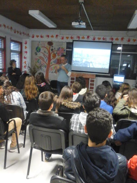 No dia 25 de janeiro, recebemos na nossa escola o professor e ator francês René Rivière. Assim, na biblioteca e durante 90 minutos, as turmas A e F do oitavo ano participaram em pequenas atividades orais promovidas pelo professor Rivière. O objetivo, que foi alcançado com sucesso, era desenvolver a oralidade em língua francesa. Os alunos mostraram interesse e participaram com entusiamo nas atividades propostas. Foi um convívio “à la française”.